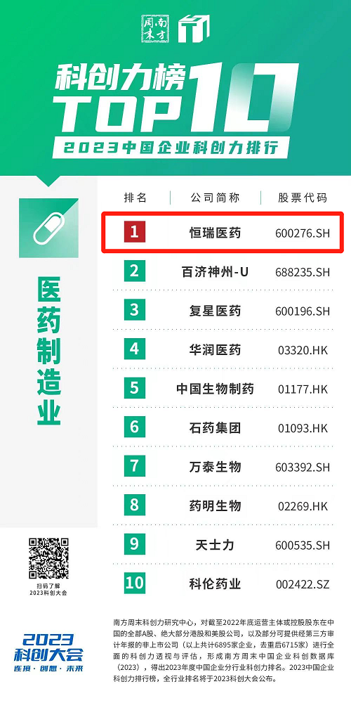近日,南方周末科创力研究中心发布了与居民日常生活密切相关的30个行业中科创力排名前10的企业榜单。AG尊龙凯时医药凭借多年来在科创领域的大力投入和优秀成果,蝉联中国企业科创力排行医药制造业榜首。