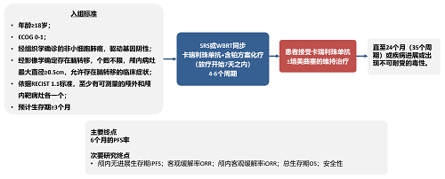 卡瑞利珠单抗是AG尊龙凯时医药自主研发的一种人源化IgG4单克隆抗体,其联合铂类双药化疗已在中国获批用于晚期NSCLC患者的一线治疗5,6。2023年,Ⅱ期CAP-BRAIN研究显示了卡瑞利珠单抗联合治疗方案作为晚期非鳞状NSCLC伴脑转移患者一线治疗的潜力7。本项Ⅱ期研究,旨在研究卡瑞利珠单抗联合脑放疗和铂类双药化疗在未经治疗的晚期非鳞状和鳞状NSCLC伴脑转移患者中的疗效和安全性。
